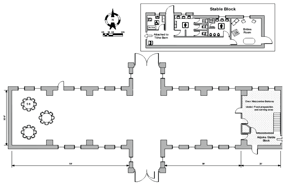 The tithe barn is licensed for civil marriage ceremonies, with space for up to 200 seated guests.